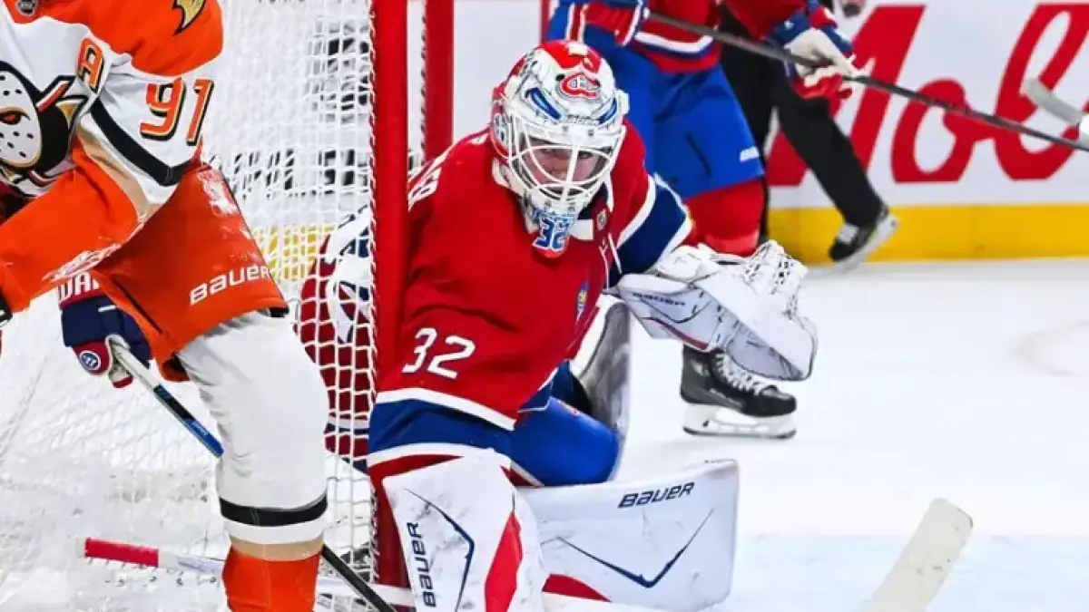 Montreal’s goaltender Jacob Fowler wears number 32. His presence factors into goal total projections.