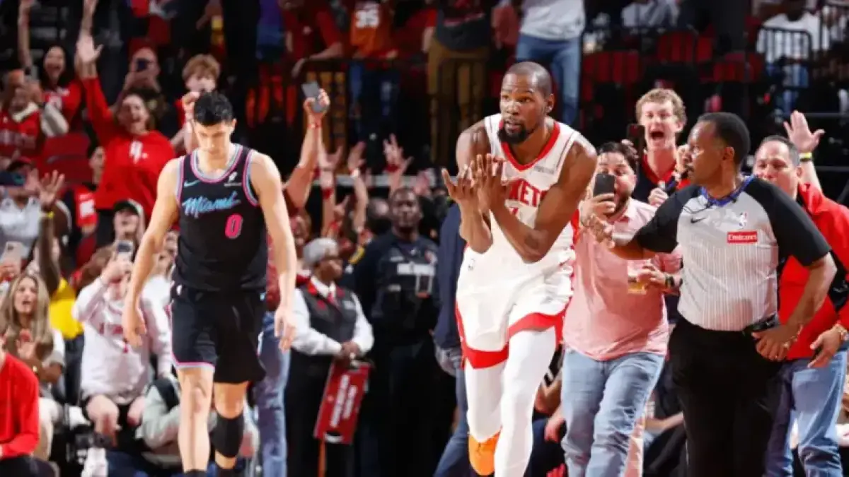 Kevin Durant scored 27 points and reached a major career milestone Saturday night in Houston. Amen Thompson’s buzzer-tip sealed a 123-122 win for the Rockets over the Miami Heat.