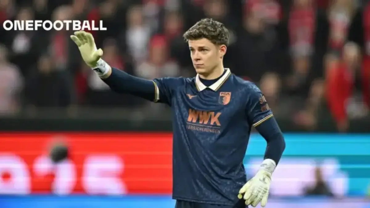 Goalkeeper Finn Dahmen was photographed gesturing during the February 27, 2026 match between FC Augsburg and 1. FC Köln. The picture was taken at the WWK ARENA by Sebastian Widmann for Getty Images.