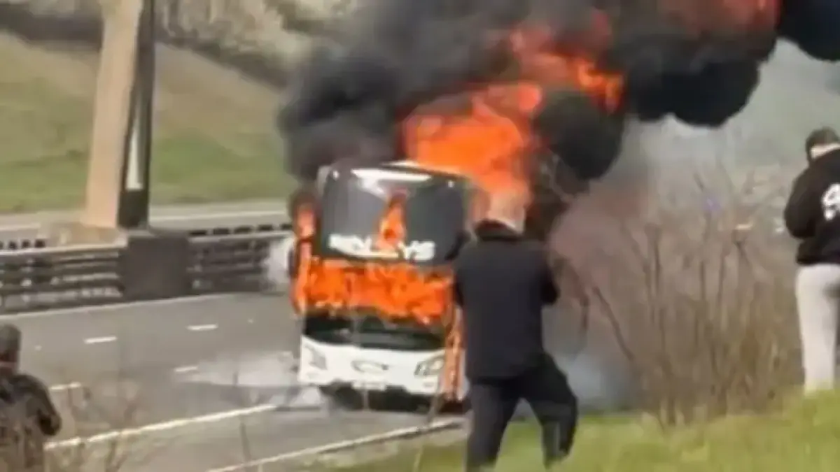 Man City Fan Coach En Route to Wembley Catches Fire