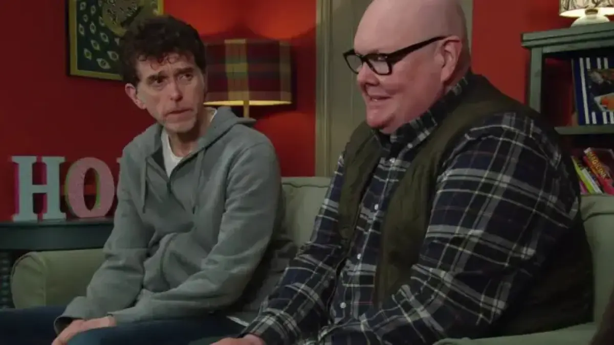 Marlon, played by Mark Charnock, recognises Paddy’s distress immediately. He reads Paddy’s body language and pulls him into a protective embrace. Charnock told Filmogaz.com that words offer limited comfort in such moments.