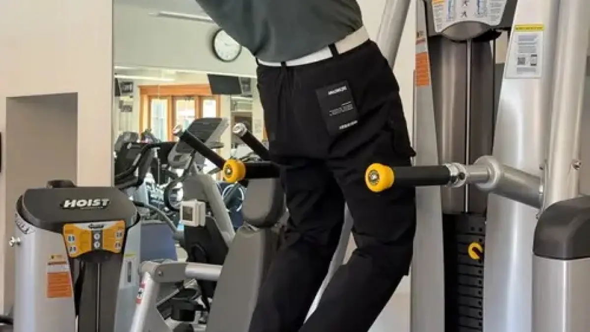 Her gym work includes chin-ups and dumbbell sessions. She began those routines during the COVID-19 pandemic and has kept them up.