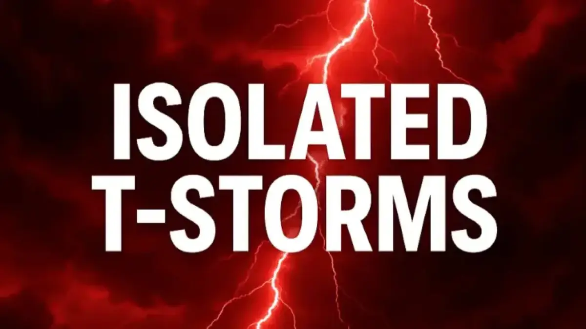 Wednesday climbs to about 80°F. Afternoon showers and isolated thunderstorms are possible after 2 p.m. Lightning will be the main threat for outdoor plans.