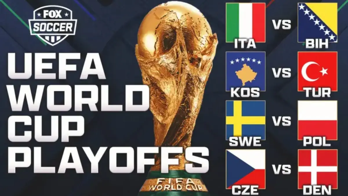 Four playoff matches decided which European sides advance. The fixtures included Kosovo vs. Türkiye and Bosnia & Herzegovina vs. Italy. Other ties featured Sweden vs. Poland and Czechia vs. Denmark.