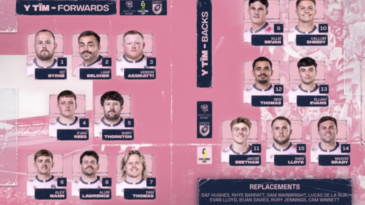 | Starting XV | Ioan Lloyd; Mason Grady, Elijah Evans, Ben Thomas, Jacob Beetham; Callum Sheedy, Ellis Bevan; Ed Byrne, Liam Belcher (c), Keiron Assiratti, Evan Rees, Rory Thornton, Alex Mann, Dan Thomas, Alun Lawrence. |