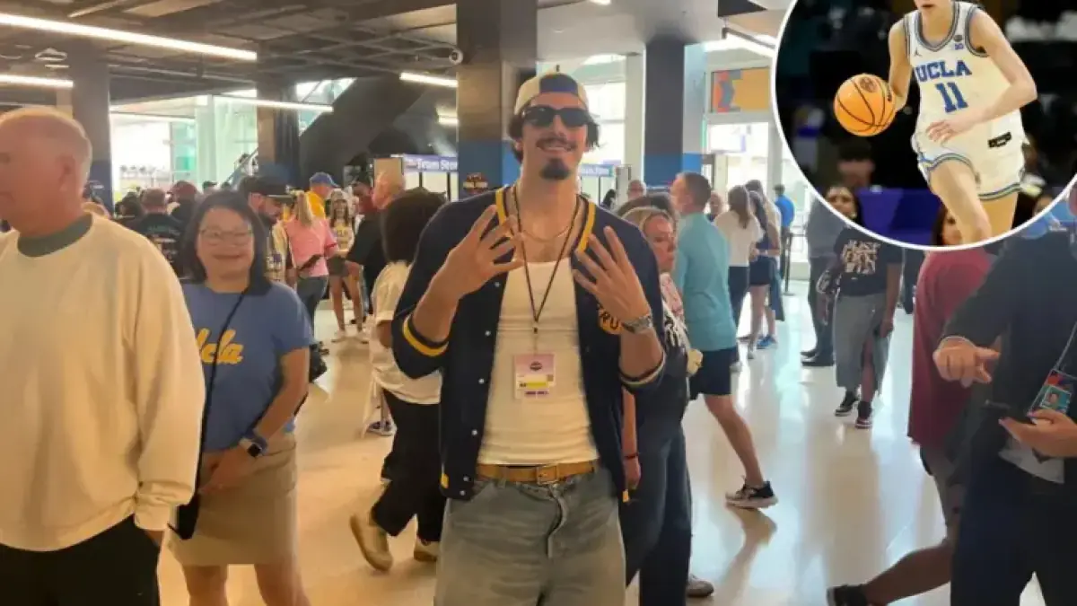 He entered the Mortgage Matchup Center wearing sunglasses and a UCLA letterman sweater. He arrived in time to support Gabriela Jaquez as UCLA faced South Carolina for the title.