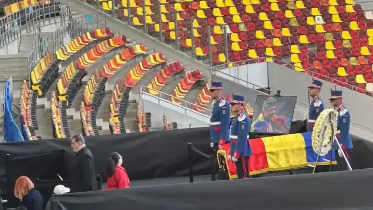 Photographs later showed Lucescu’s casket at Arena Națională. The images underscored the scale of national mourning.