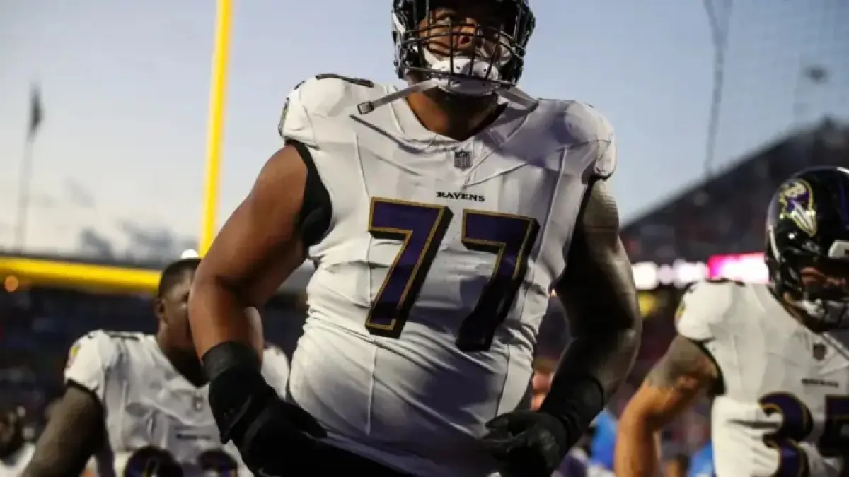 Standing at 6 feet 8 inches and weighing 370 pounds, Faalele was selected by the Ravens in the fourth round of the 2022 NFL Draft. Over the past two seasons, he started every game at right guard and played more than 1,000 offensive snaps each year.