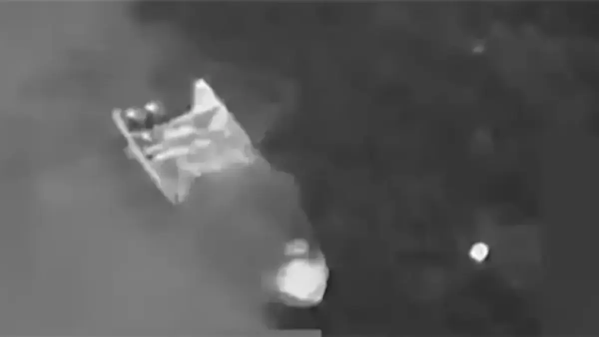 In an official statement, Southern Command described the deceased as male “narco-terrorists.” A black-and-white aerial video released alongside the statement showed a small fishing boat, likely a panga, being targeted by airstrikes. The footage depicted the vessel smoking after being struck by munitions from above.