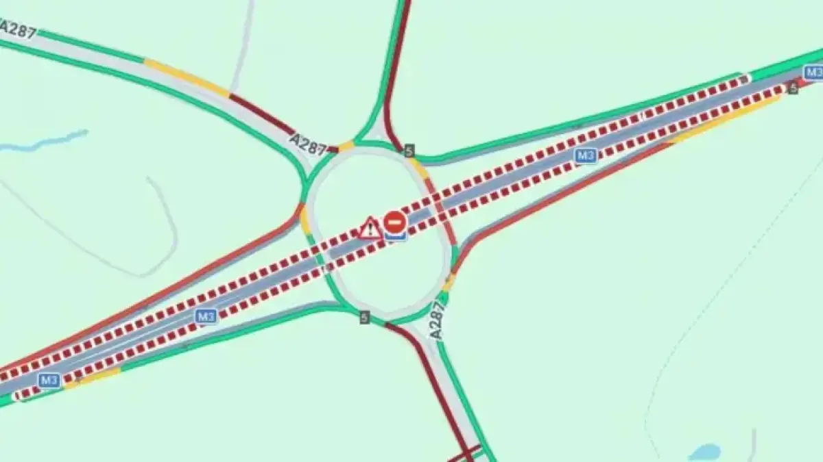 Both directions of the M3 at Junction 5 remain closed while crews clear the scene. Drivers face significant delays and lane restrictions.