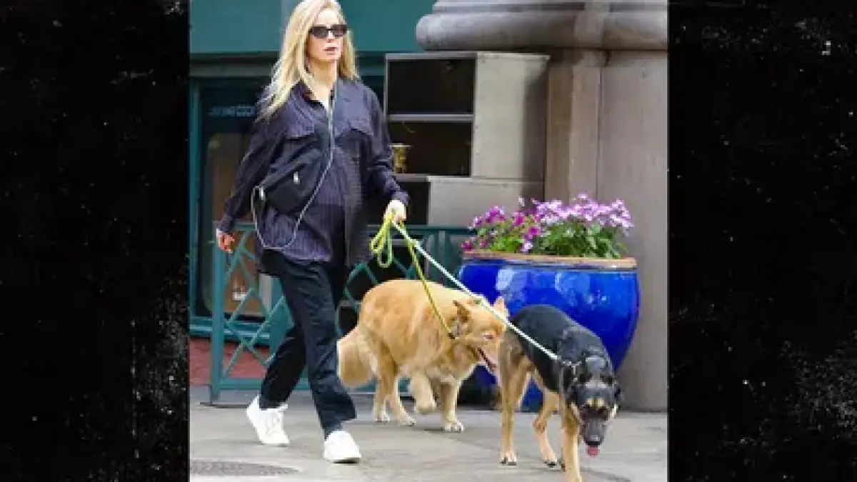 - Public sighting in NYC shows Wallis’s baby bump while she walked two dogs.