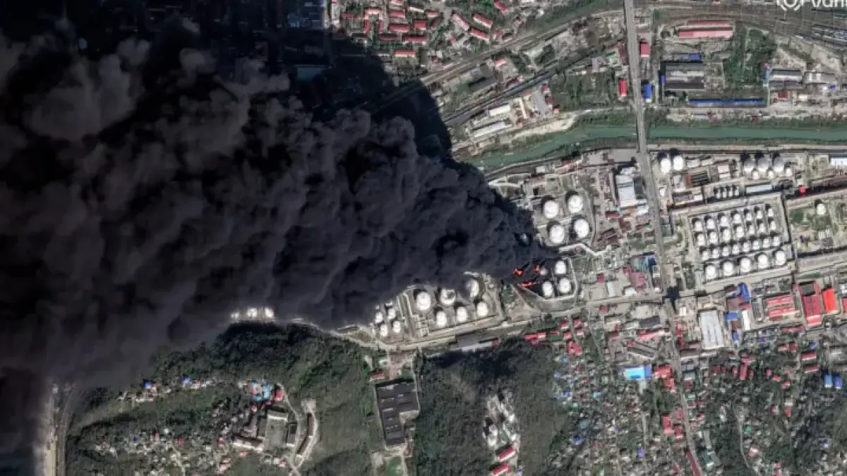 Firefighters worked into a second day to control a blaze at the Black Sea port of Tuapse. The fire followed drone strikes that hit oil infrastructure on April 16.