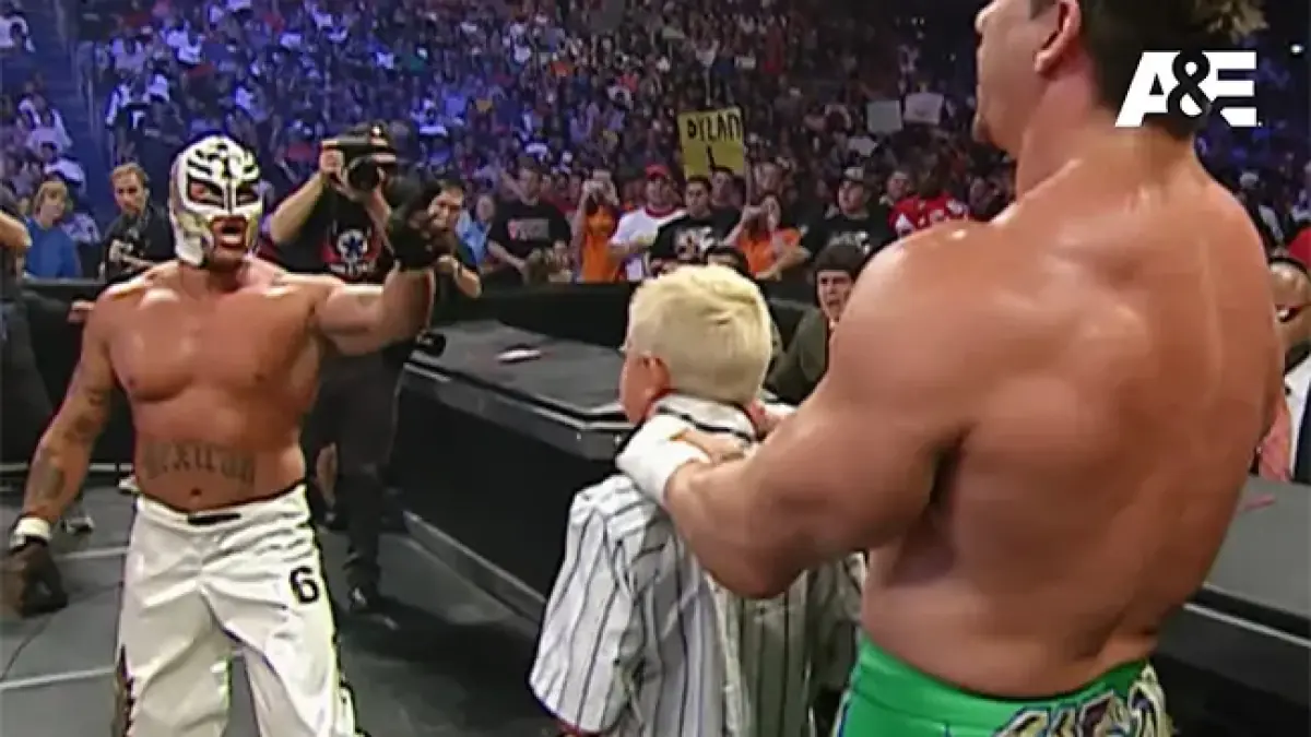 One of his earliest images is Rey Mysterio taking a guitar shot from Jeff Jarrett. That moment remains prominent in his memory.